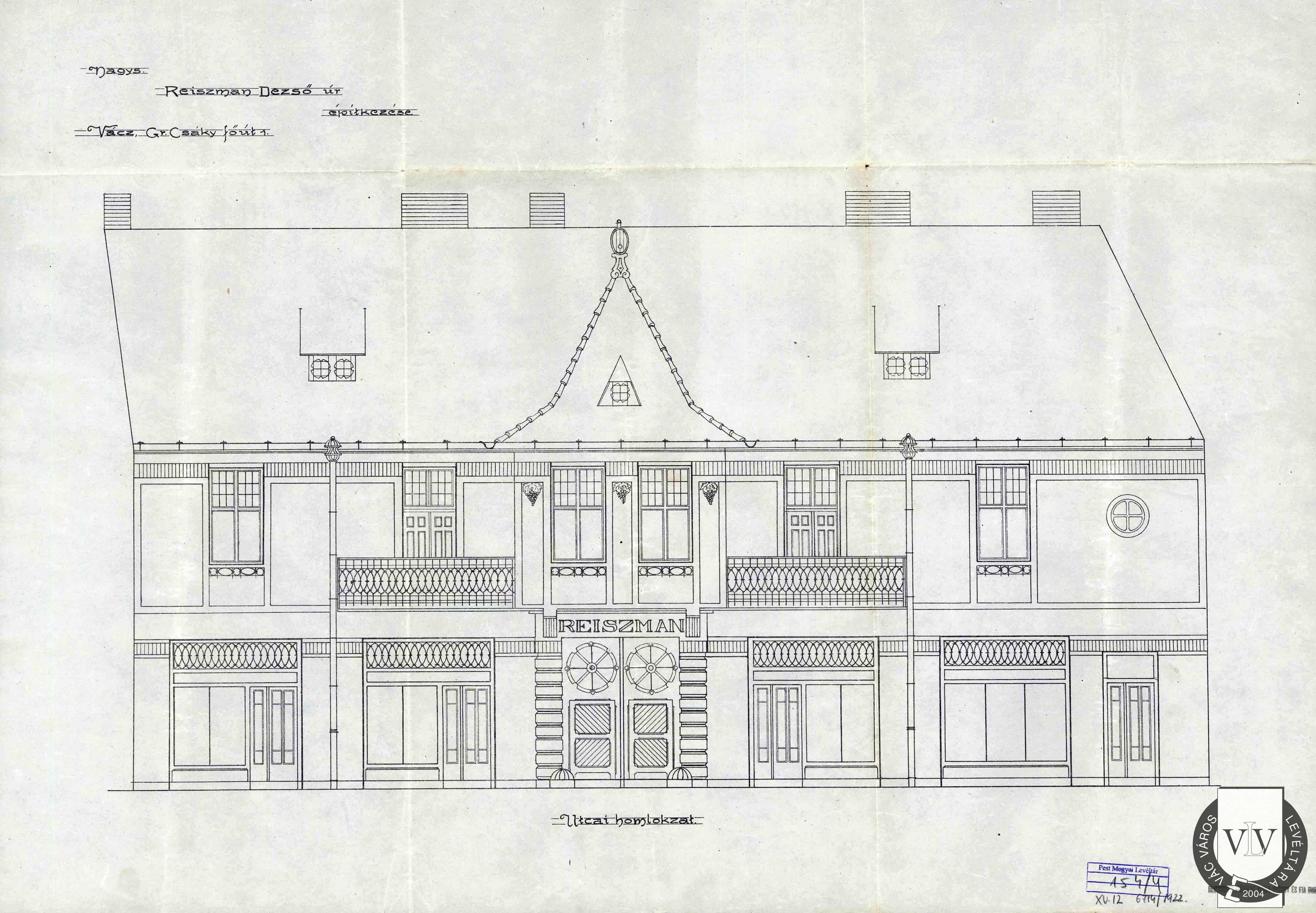 A Reiszman-ház udvari homlokzati rajza, 1922