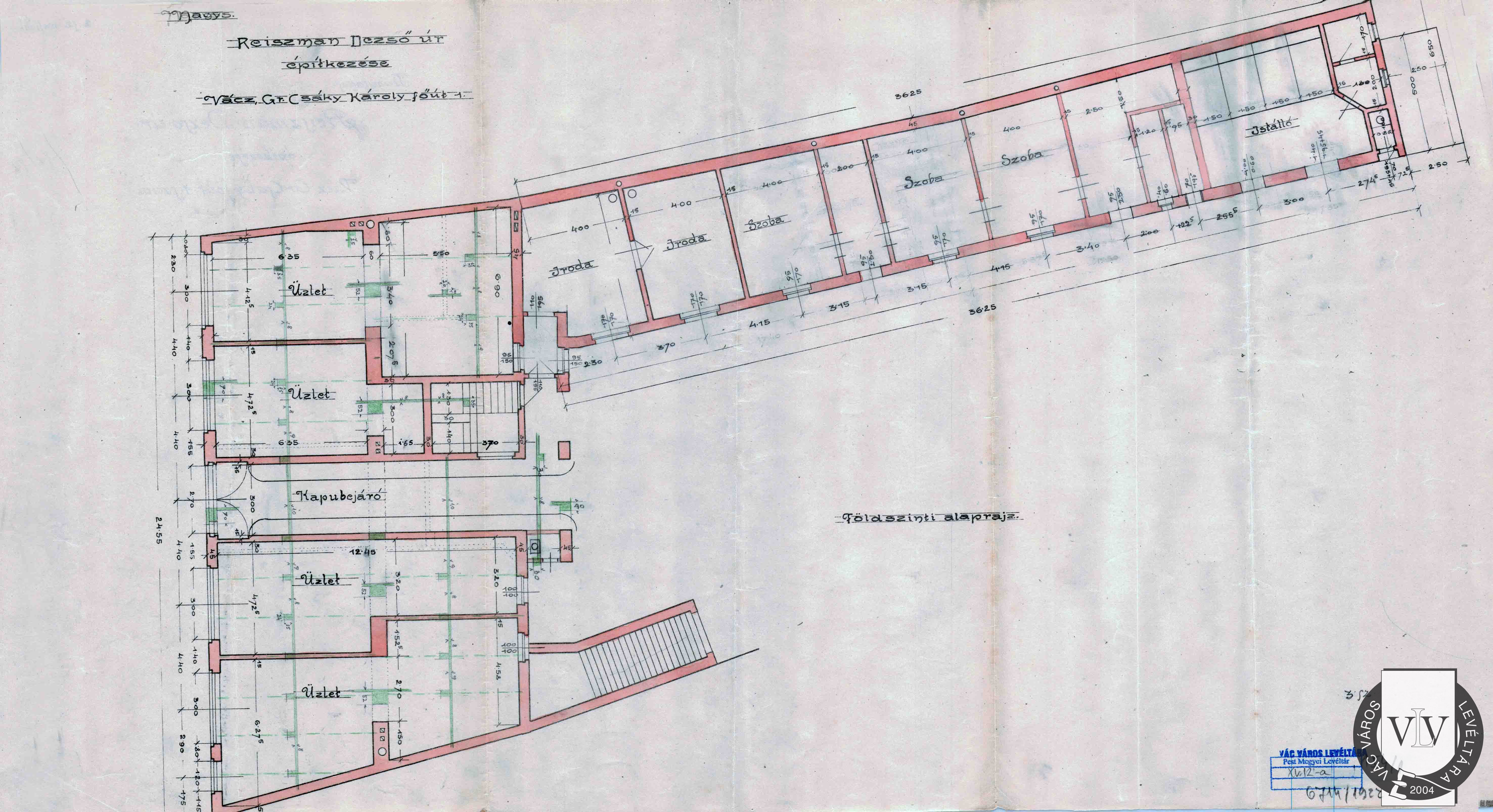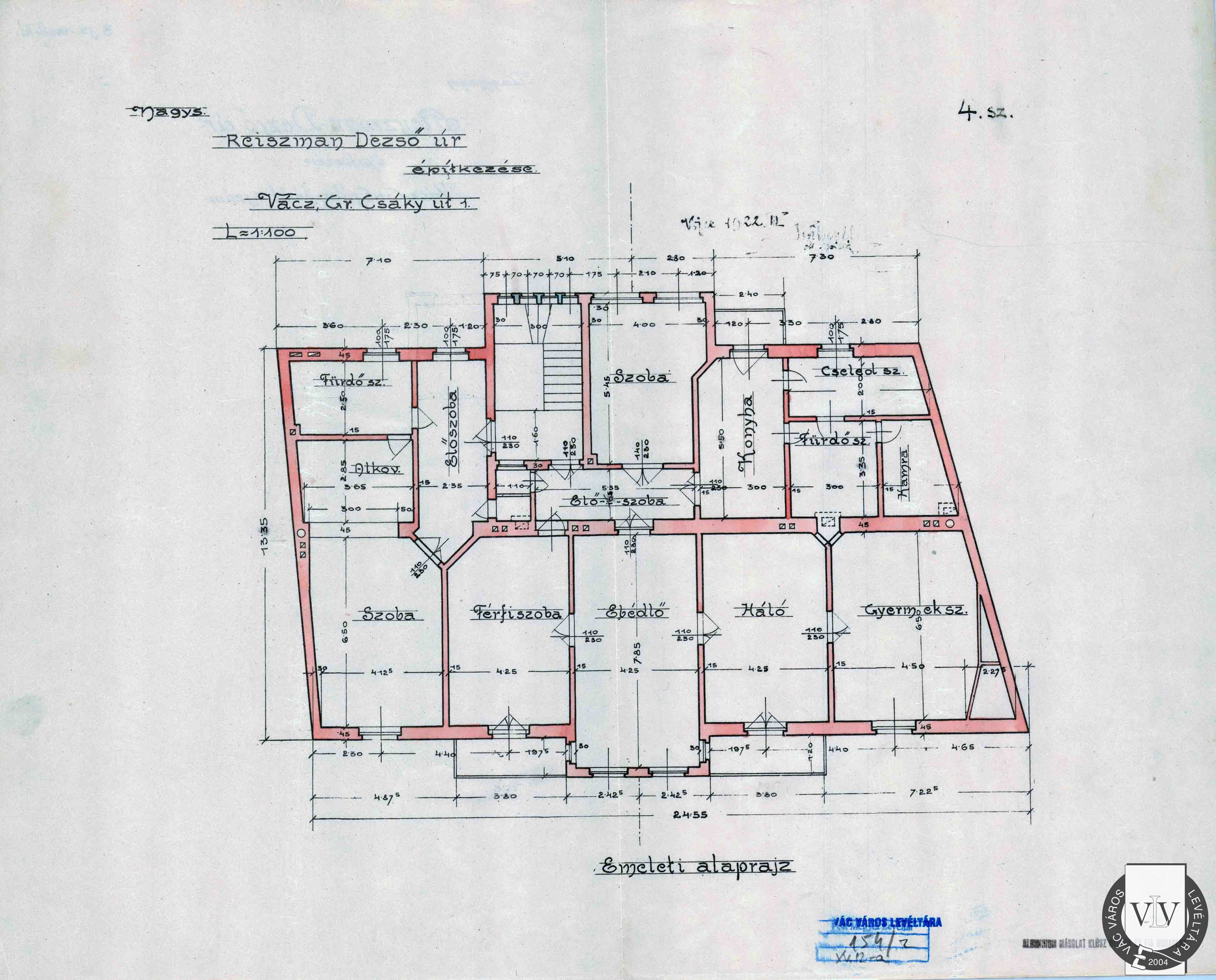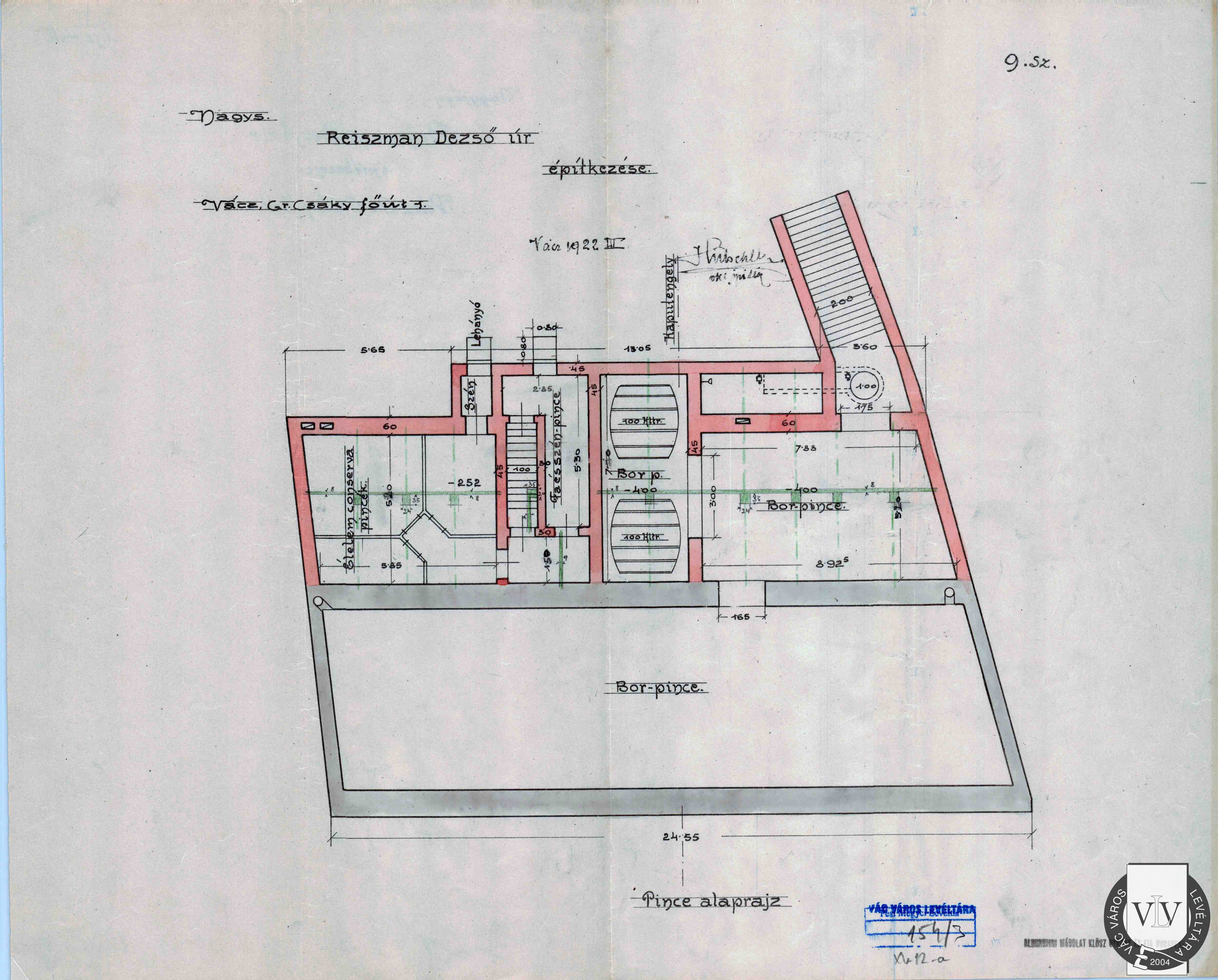 A Reiszman-ház keresztmetszeti rajza, 1922