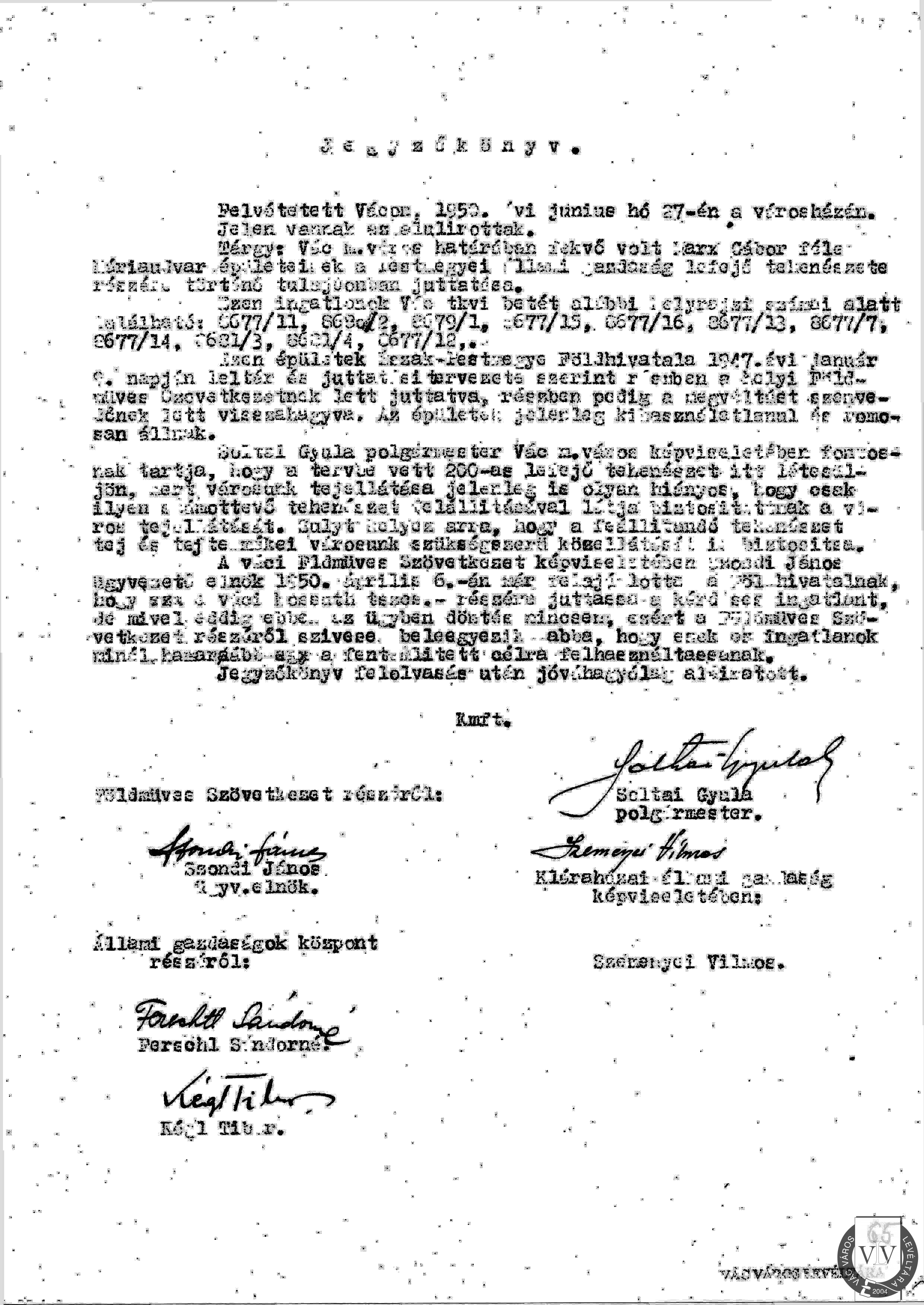 Máriaudvar államosítási jegyzőkönyve, 1950