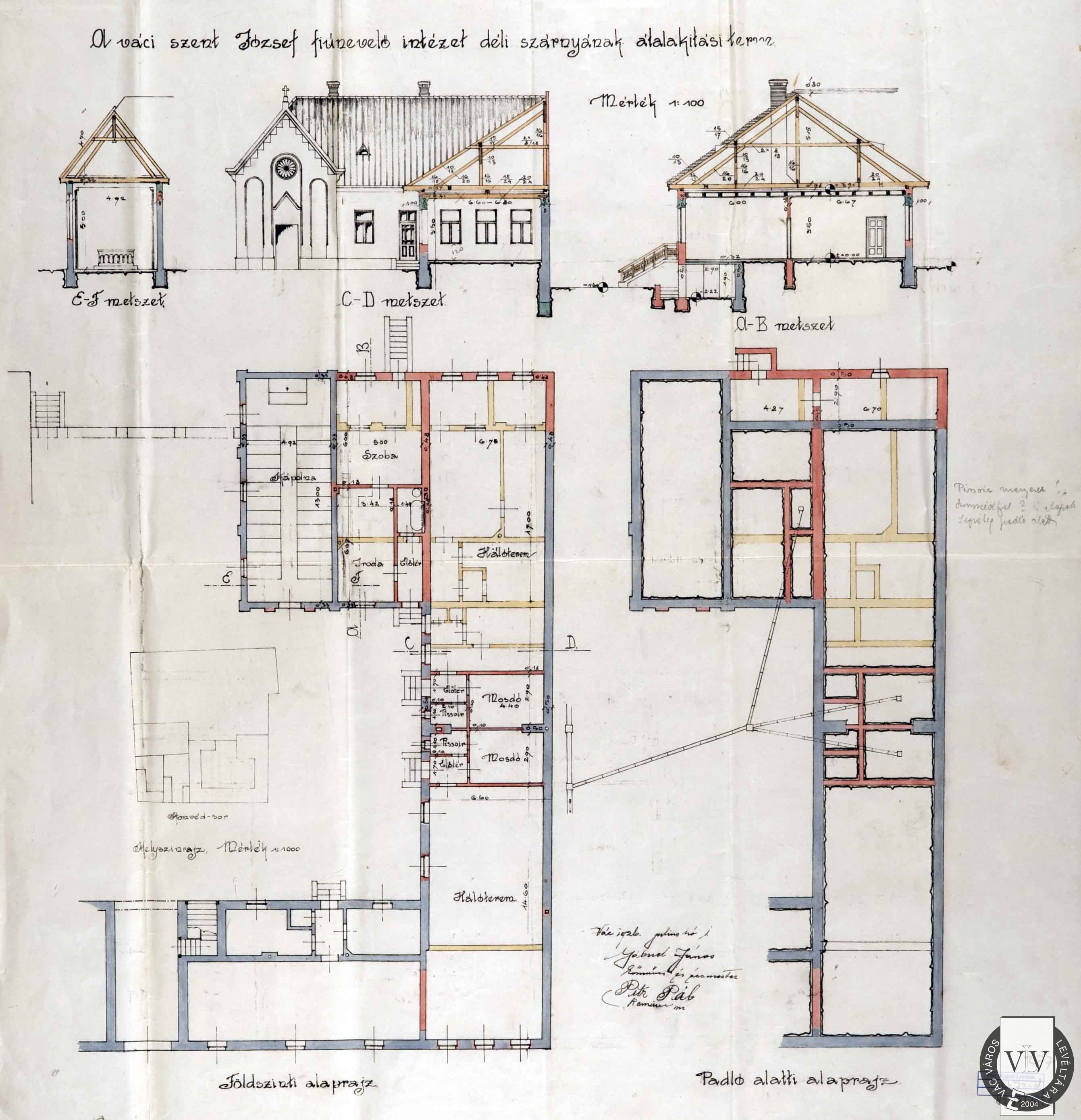 A Szent József Intézet átépítési tervrajza, 1926