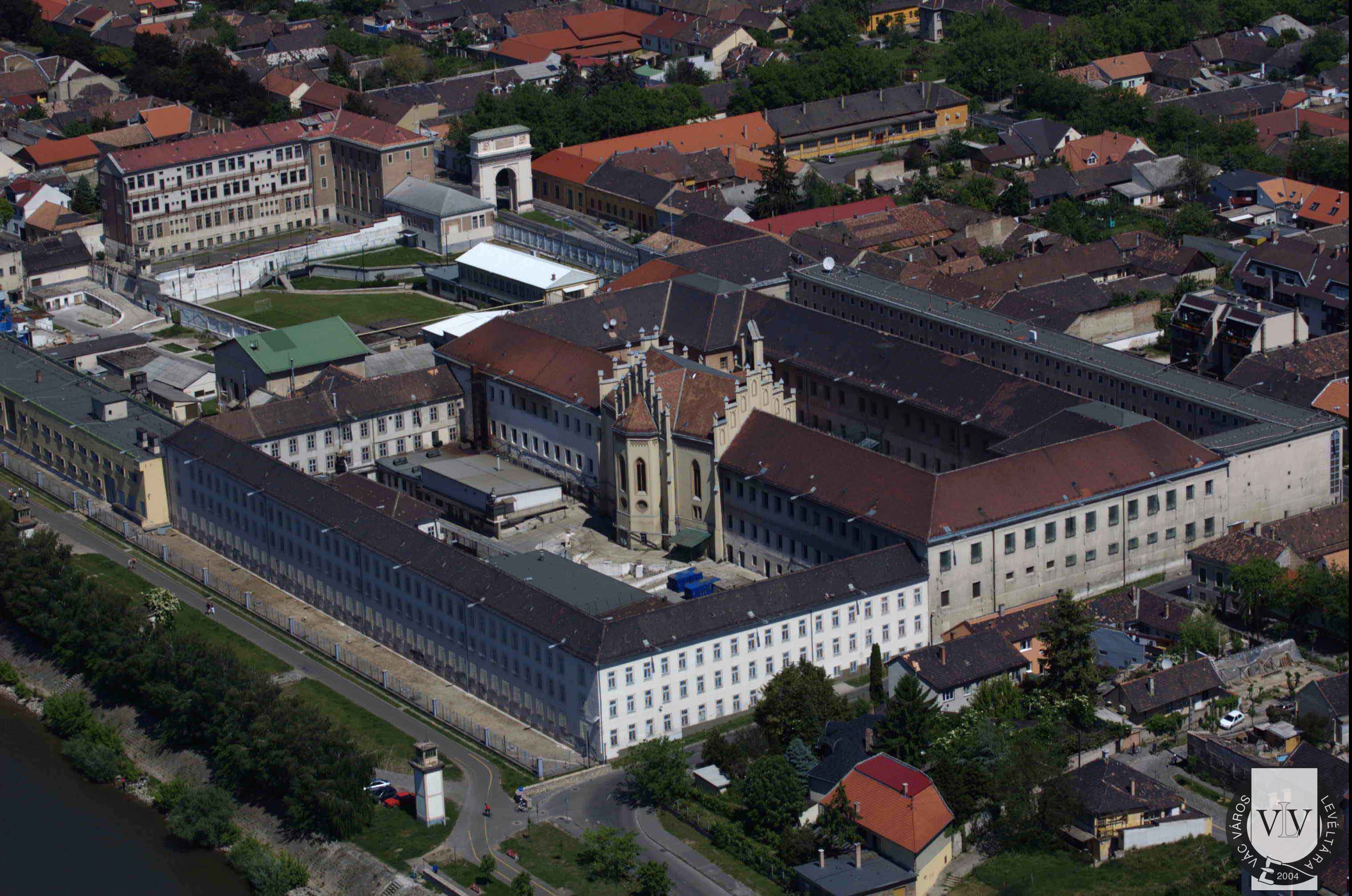 A fegyház madártávlatból, középen a neogótikus kápolnával, 2008