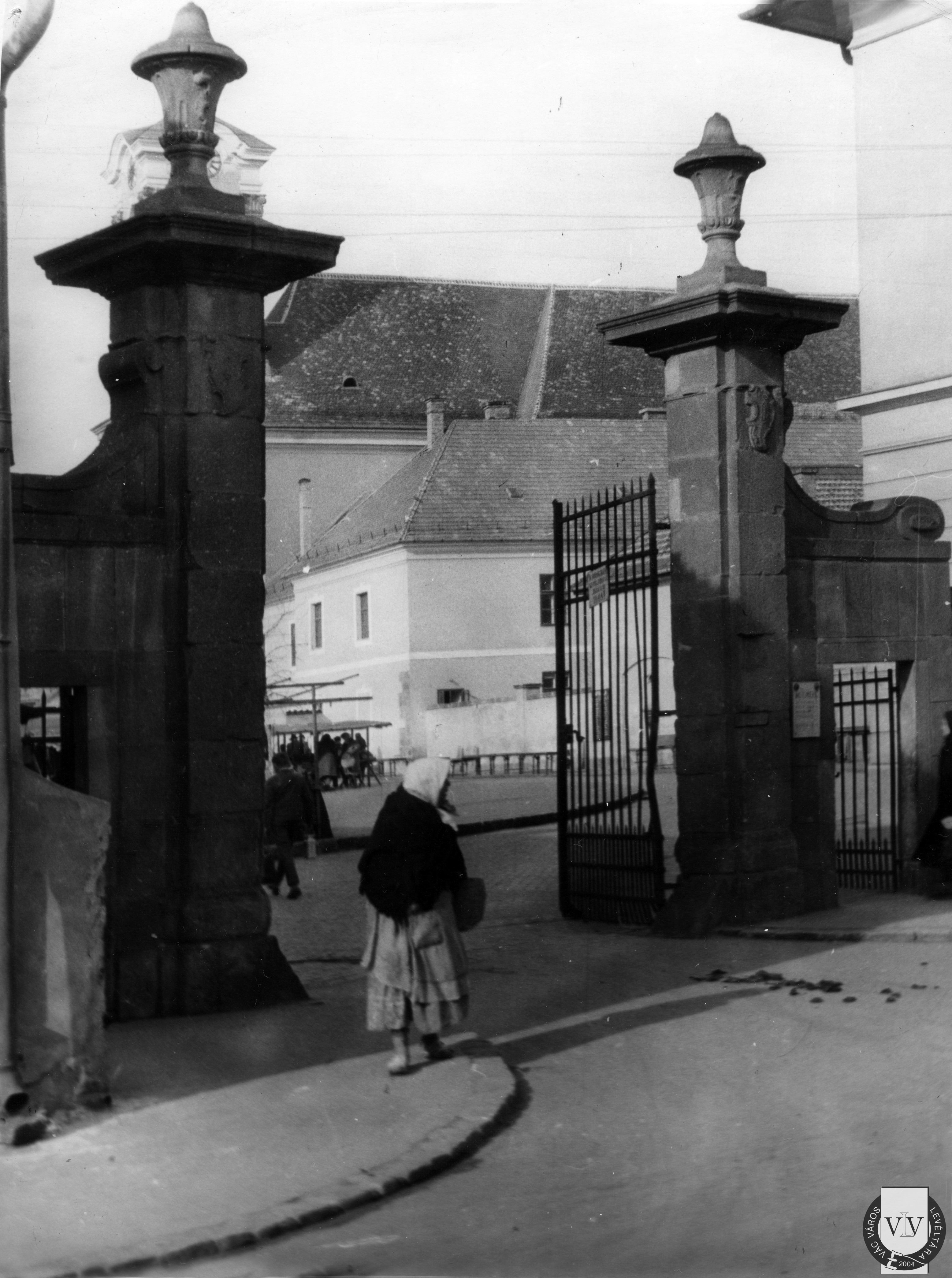 A piac két bejárataként szolgál az egykori Zöldfai malom kapuja (MTI, fotó: Zimmer Erzsébet), 1954
