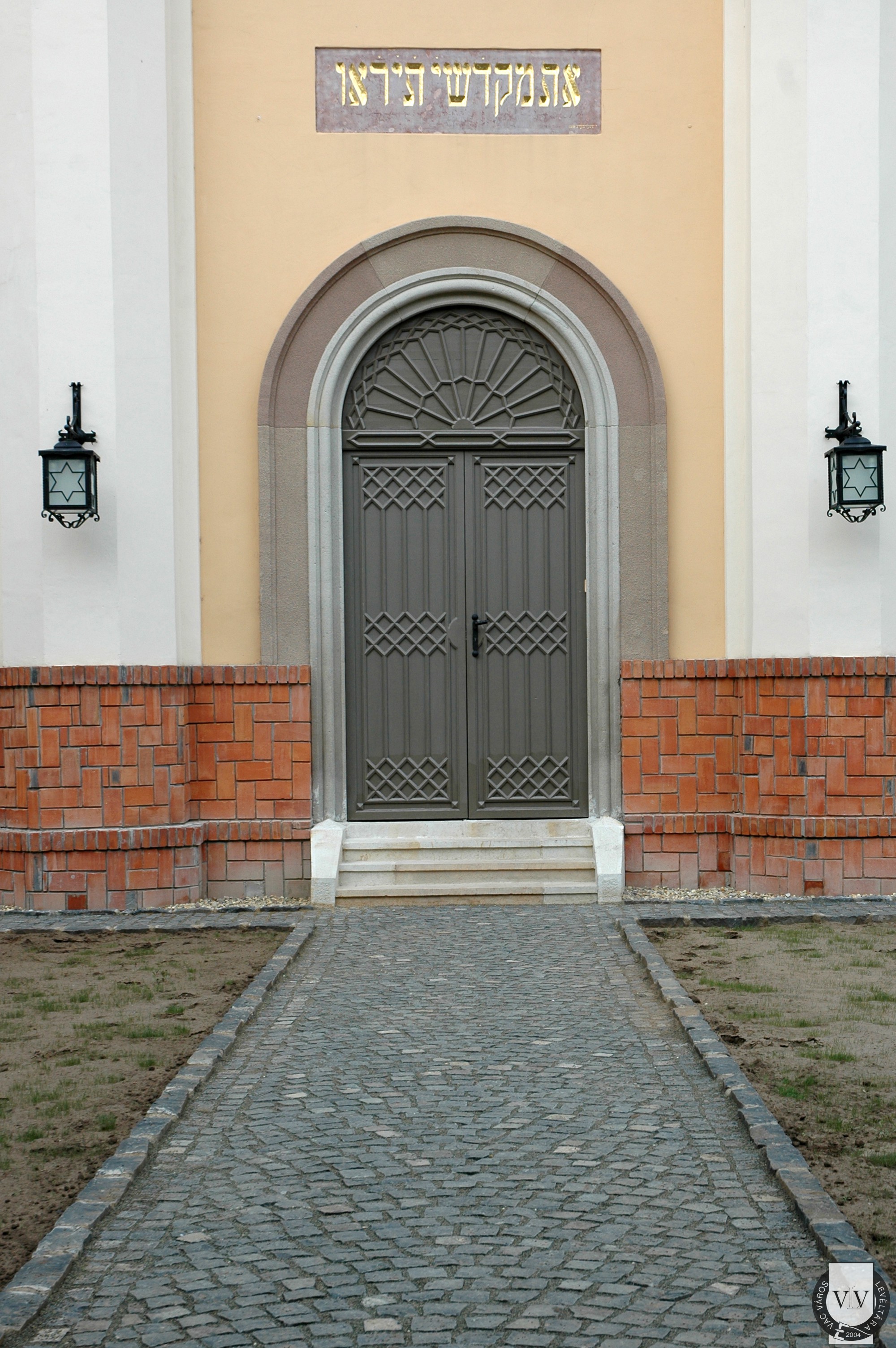 Mózes tízparancsolat kőtáblája a zsinagóga homlokzatán, 2008