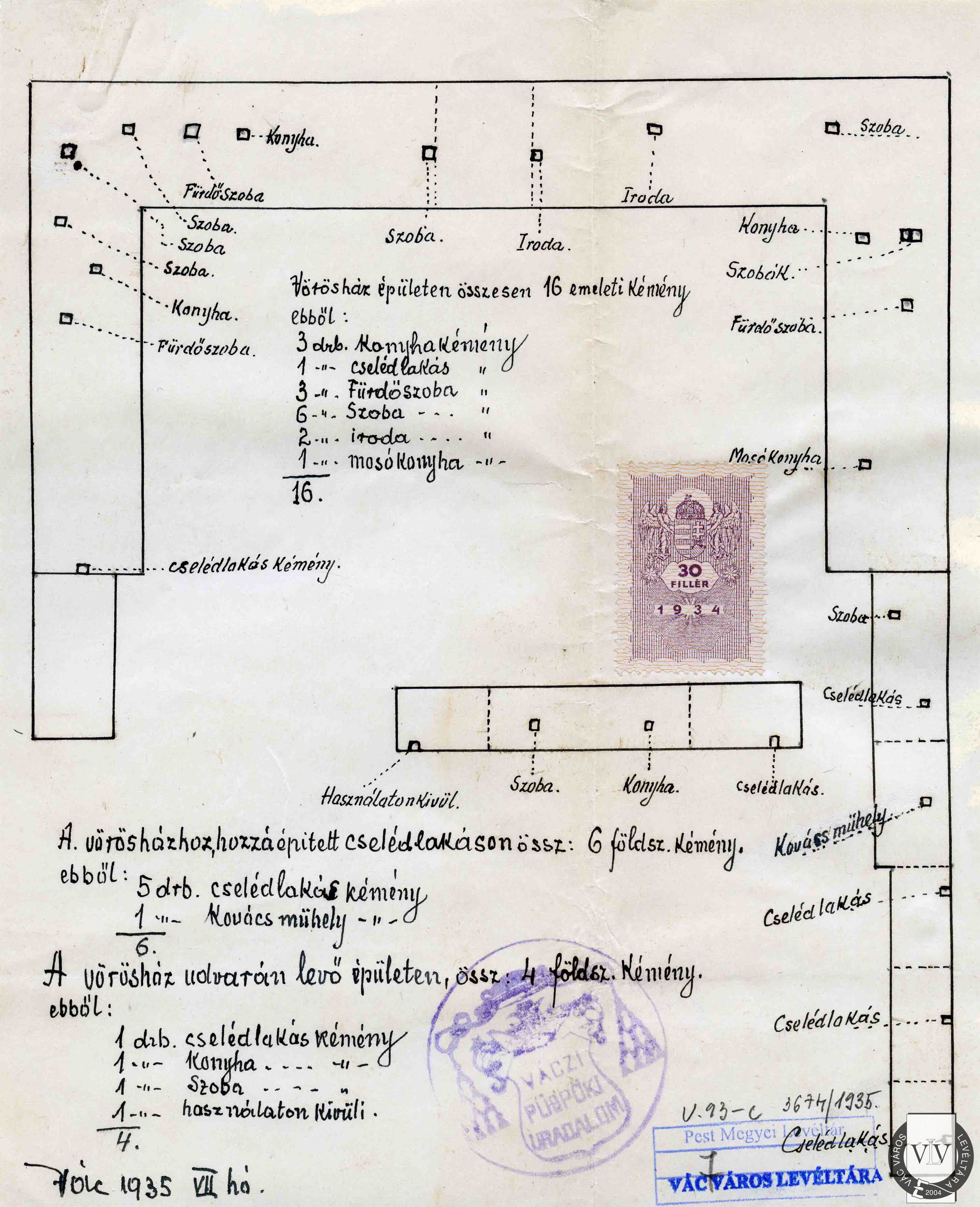 A Váci Püspöki Uradalom hátsó udvari cselédlakásainak és kéményeinek kimutatása, 1935