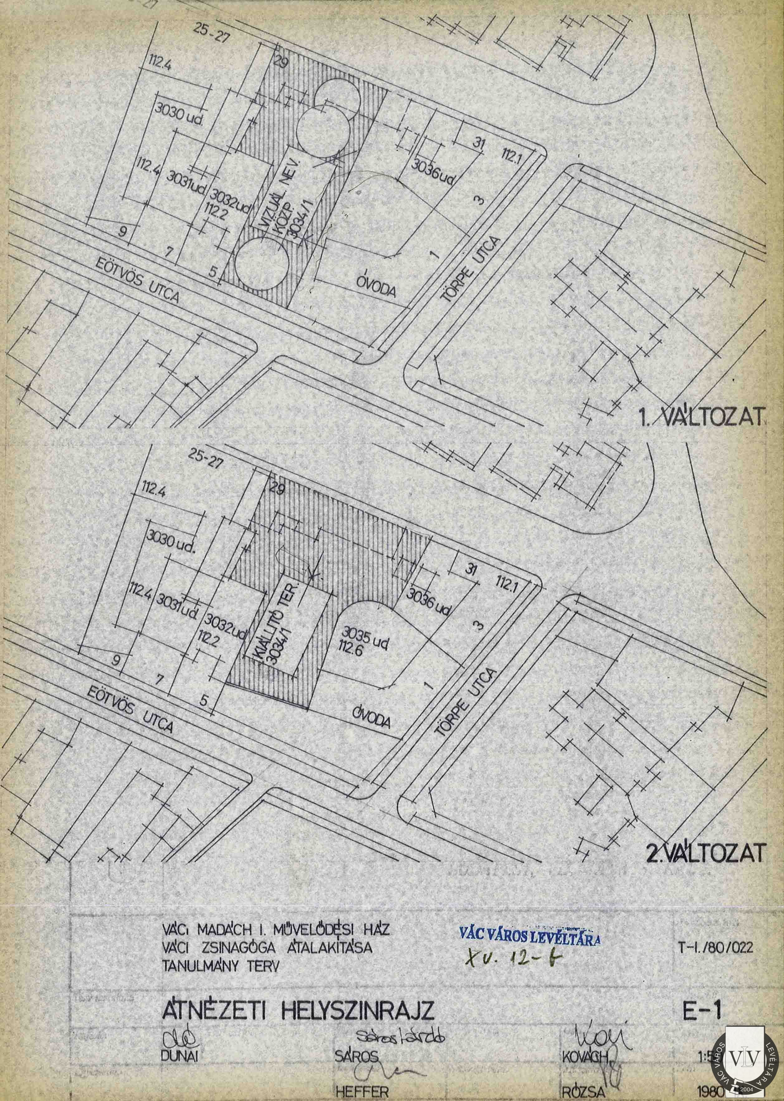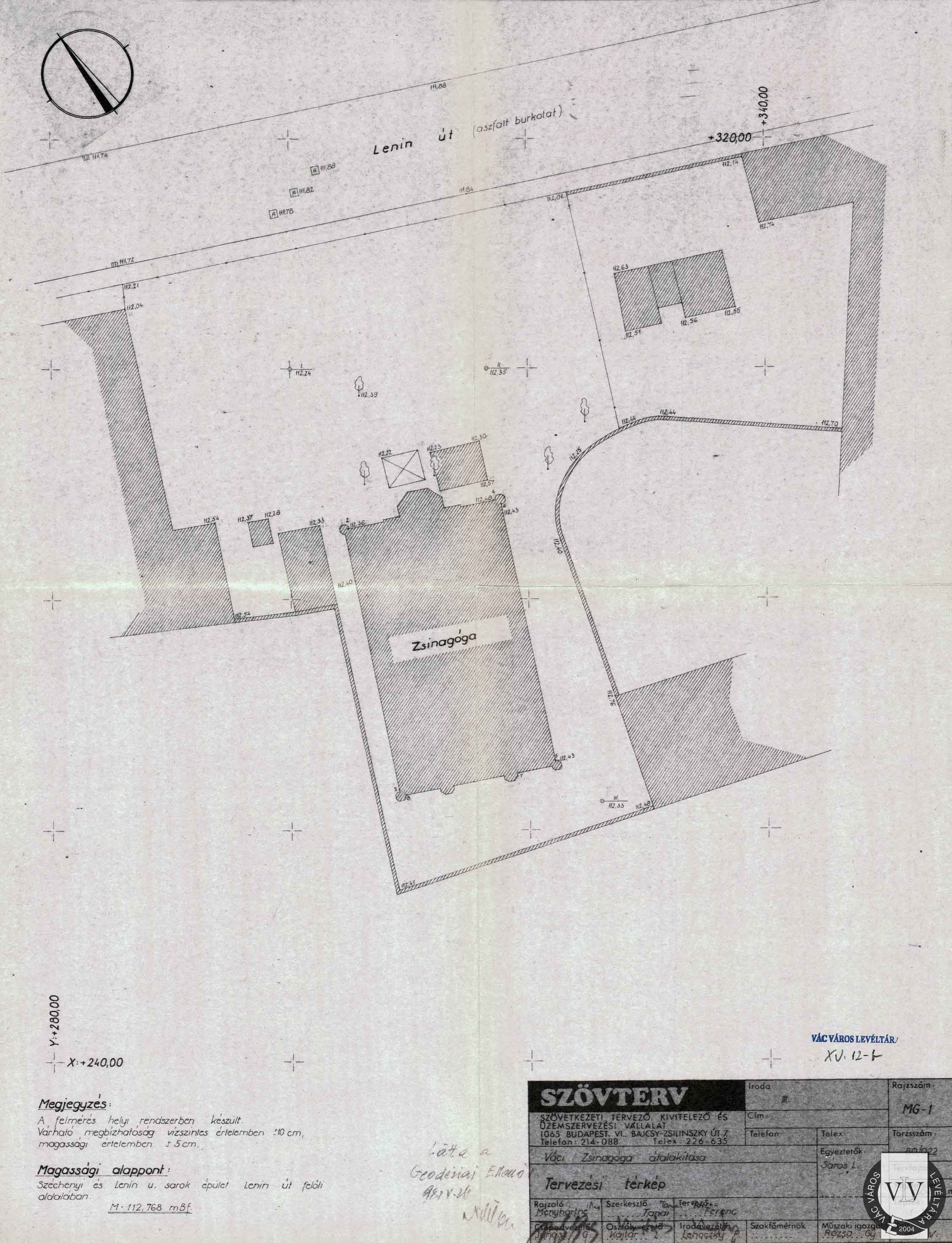 A zsinagóga és környékének átnézeti helyszínrajza, 1980