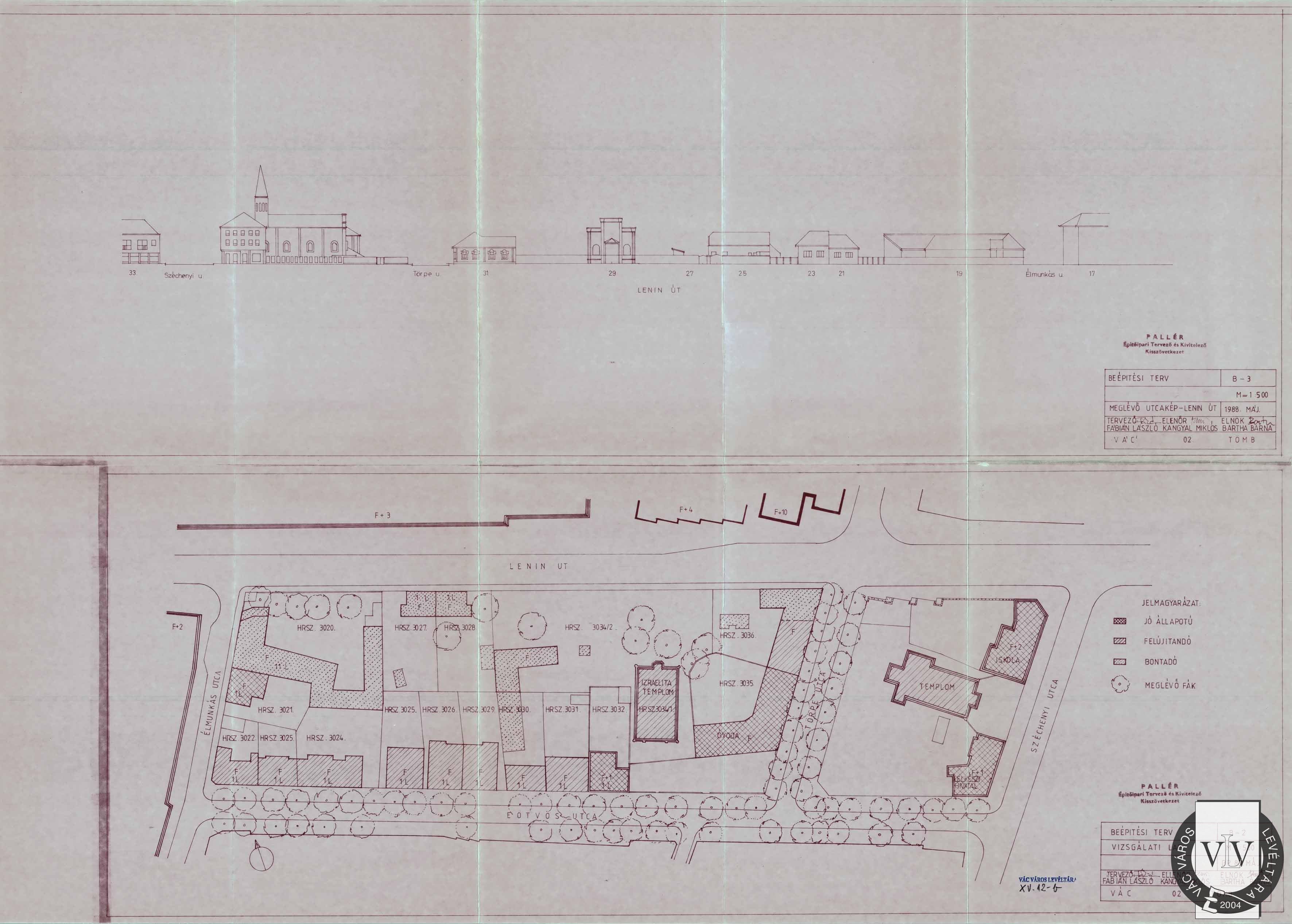 A zsinagóga és környékének beépítési helyszínrajza, 1988