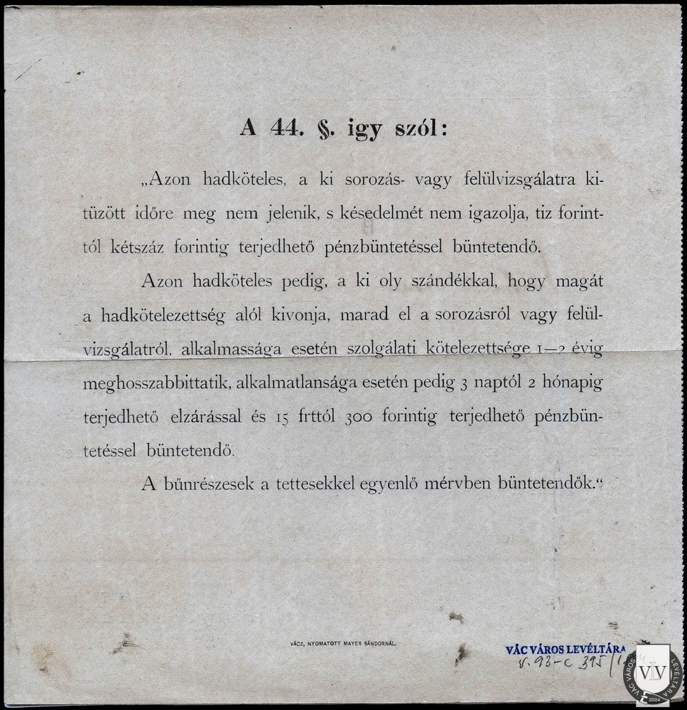 | Nyitrai Péter Pál | Vác (Pest-Pilis-Solt-Kiskun m.) | napszámos | hadköteles; Salgótarjánban kéri soroztatni magát | Nyitrai Péter sorozási íve | Lapujtõ | VVL V. 93-c II. 395/1894. |