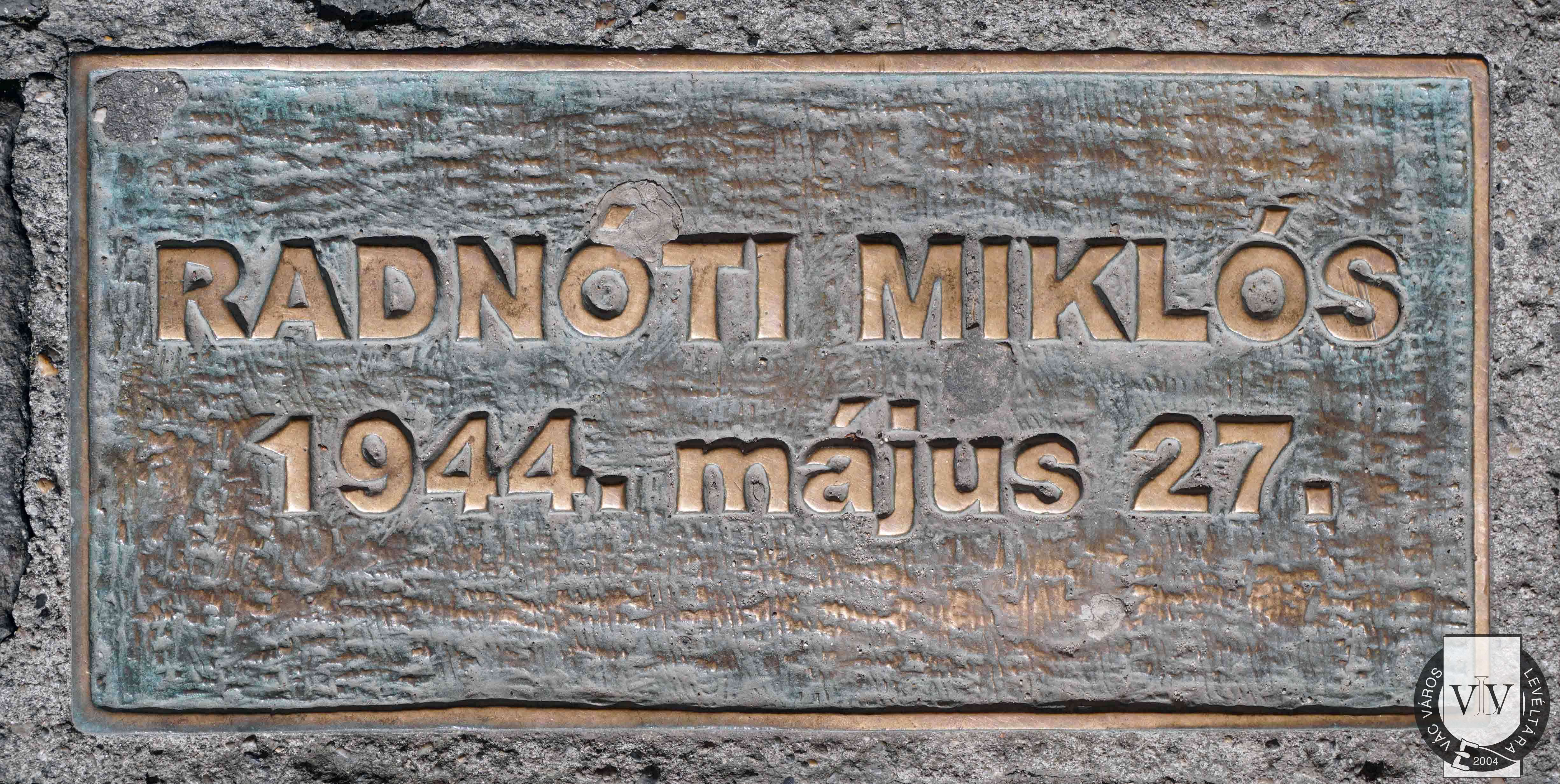Radnóti Miklós botlatóköve a vasúállomás bejáratánál
